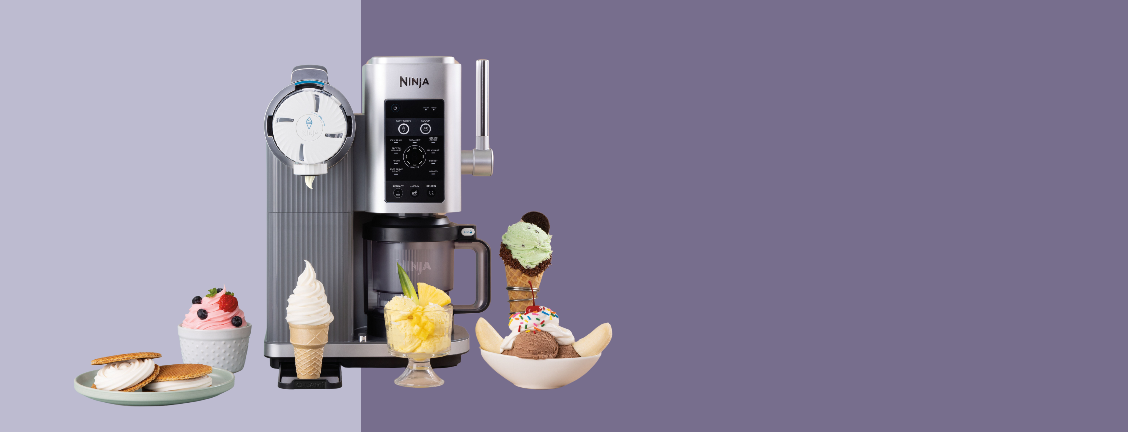استمتع بـ 6 برامج لآيس كريم ناعم: زبادي مجمّد، وفروتي، وآيس كريم، وآيس كريم خفيف، وجيلاتو آيس كريم ناعم، وCreamiFit.
