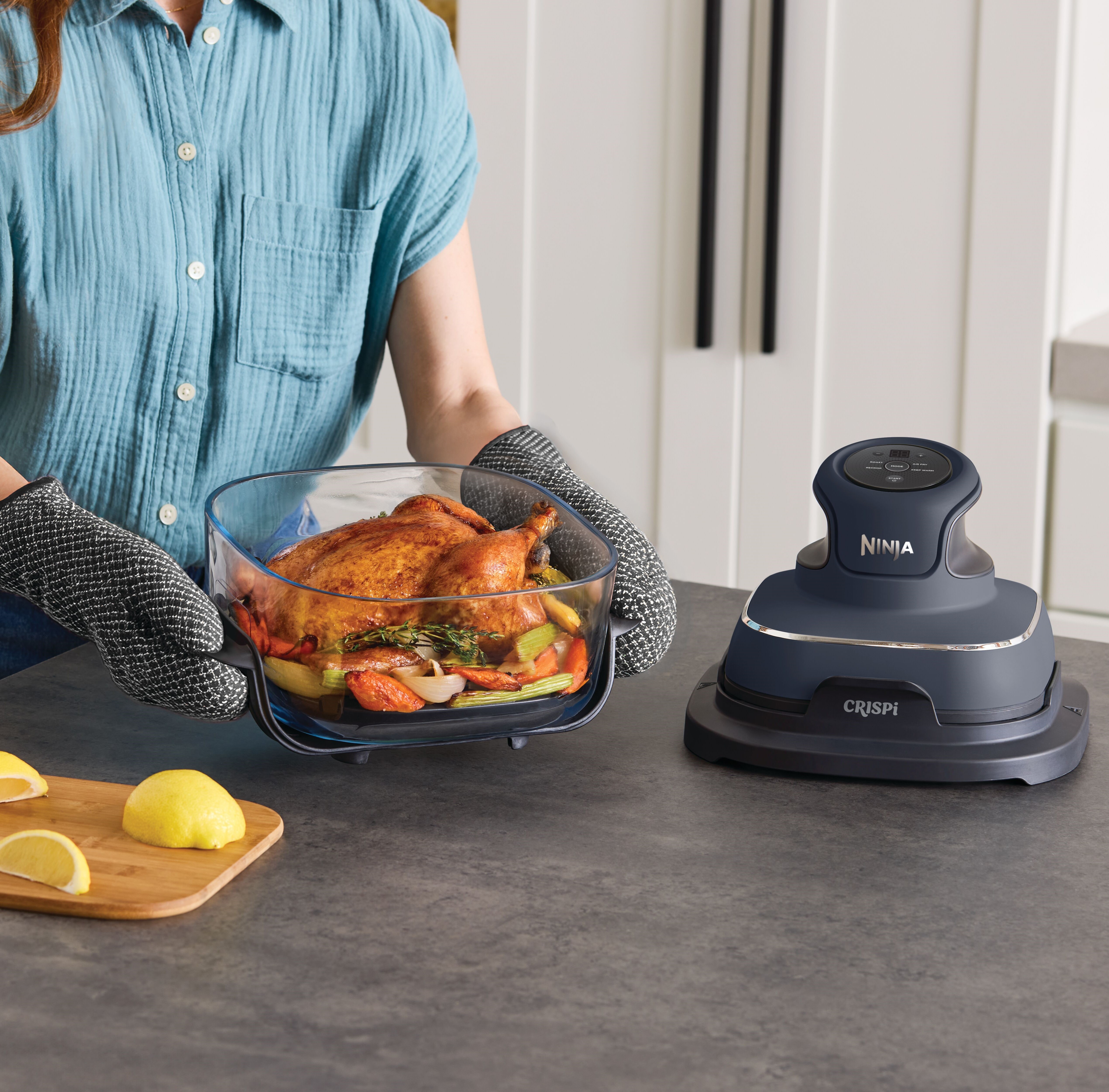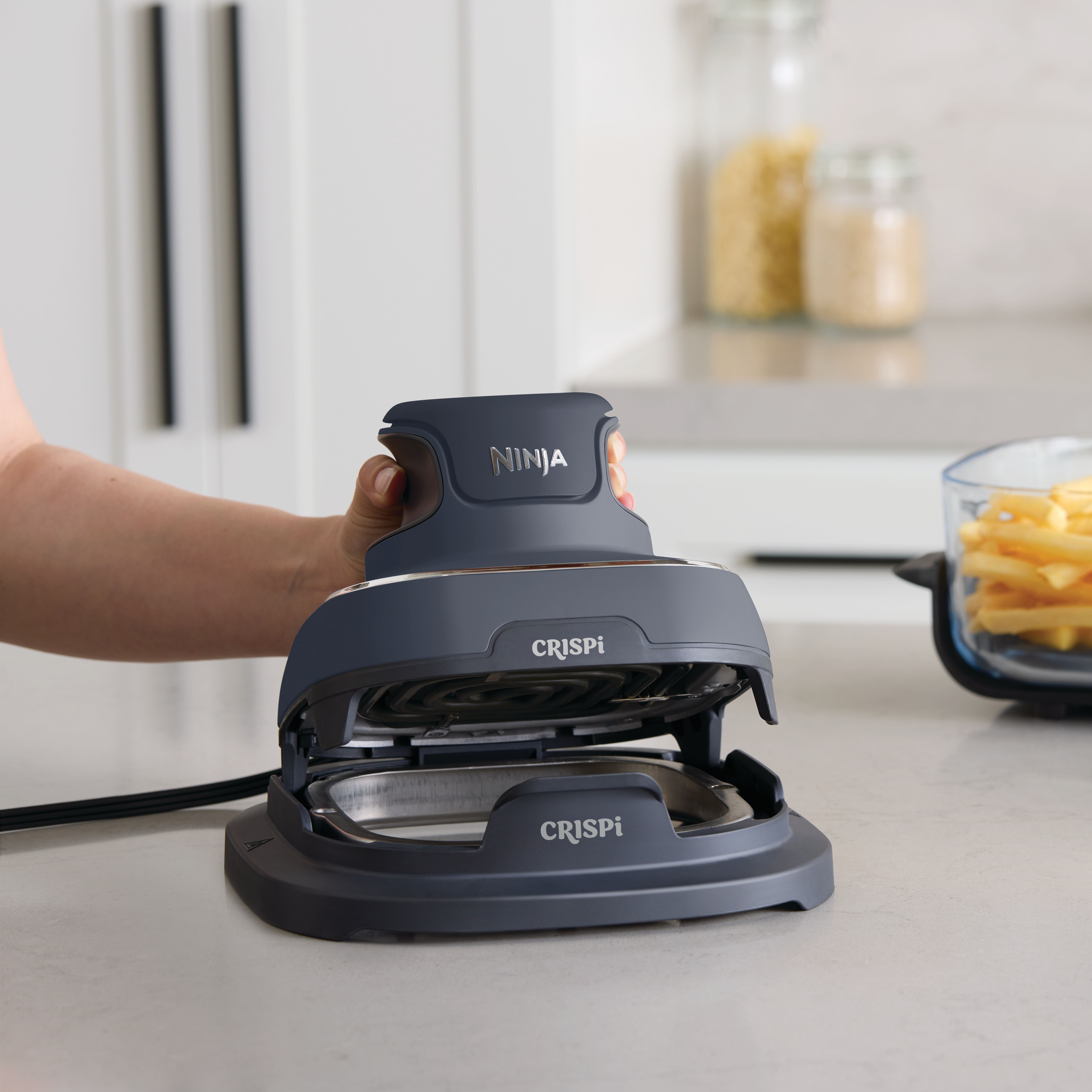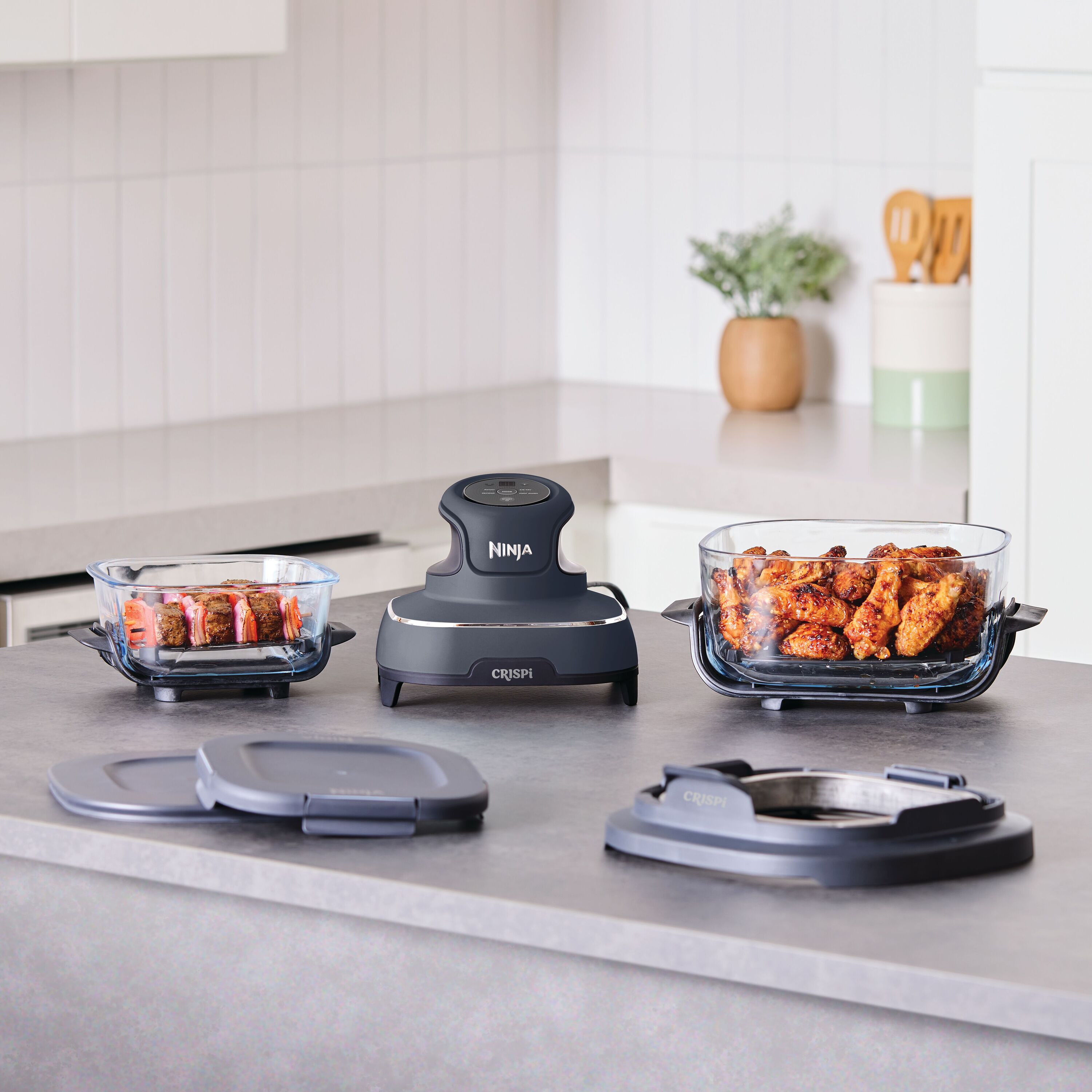 Meet the Ninja CRISPi 4-in-1 Portable Glass Air Fryer Cooking System, the power of a full-size air fryer in a portable cooking system. Simply snap the lightweight, handheld 1700-watt PowerPod onto one of the glass cooking containers to create family-size meals and personal portions with 4 cooking functions.