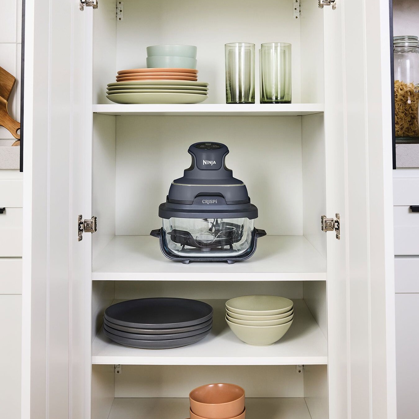 Nest your PowerPod and Cleancrisp glassware together and tuck neatly away to keep your counterspace clear.